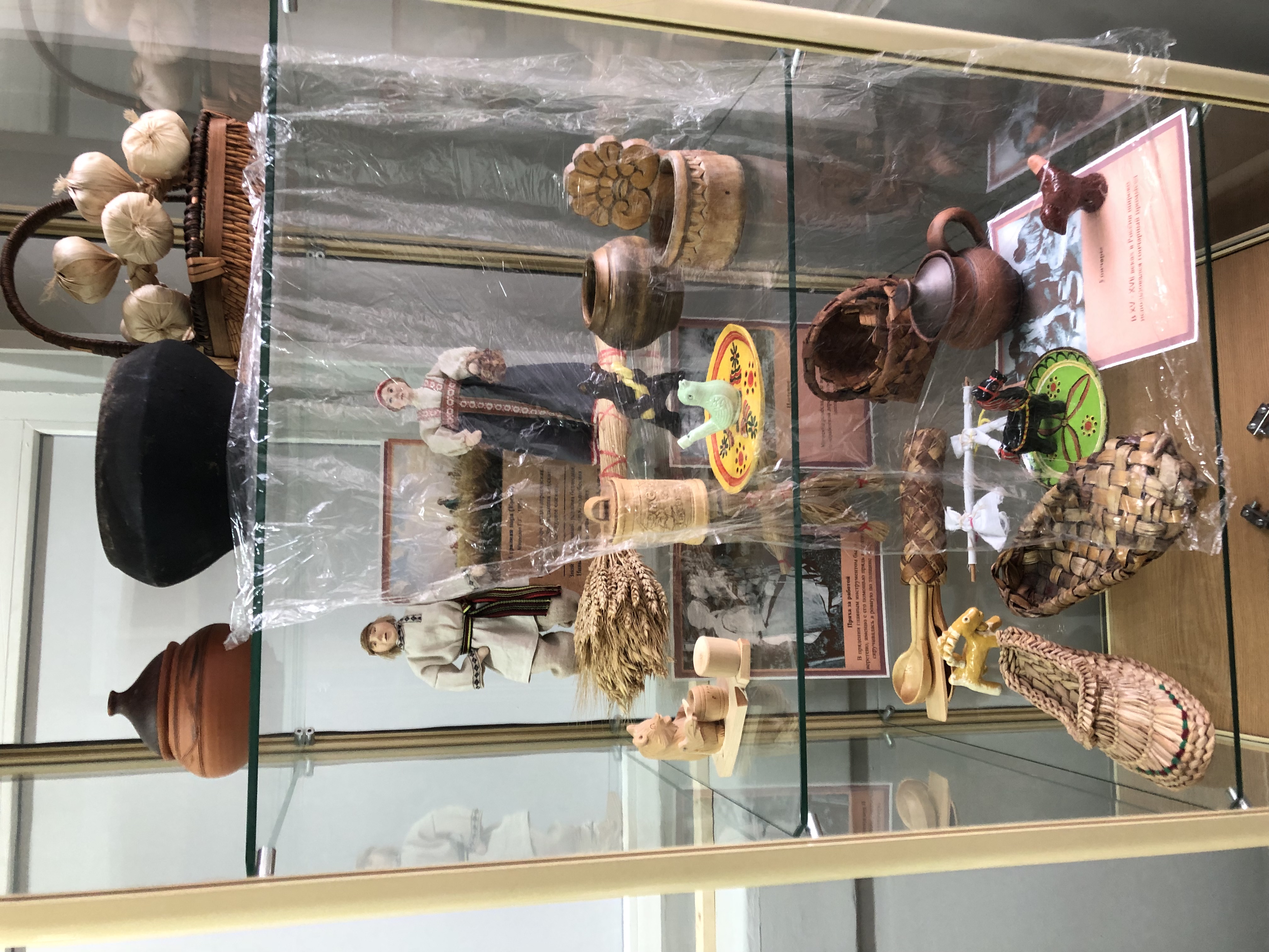 Среди экспонатов музея можно увидеть старинный самовар, подшивку газеты «Театр» 1912 года, печатную машинку, патефон, швейную машинку фирмы «Зингер» и другие весьма интересные вещи. Кроме того, у нас есть своя картинная галерея. Художник Алексей Белоусов передал в дар музею картины с видами нашего района. Экспозицию нашего школьного музея украшают макеты и глиняные фигурки, выполненные обучающимися нашей школы.