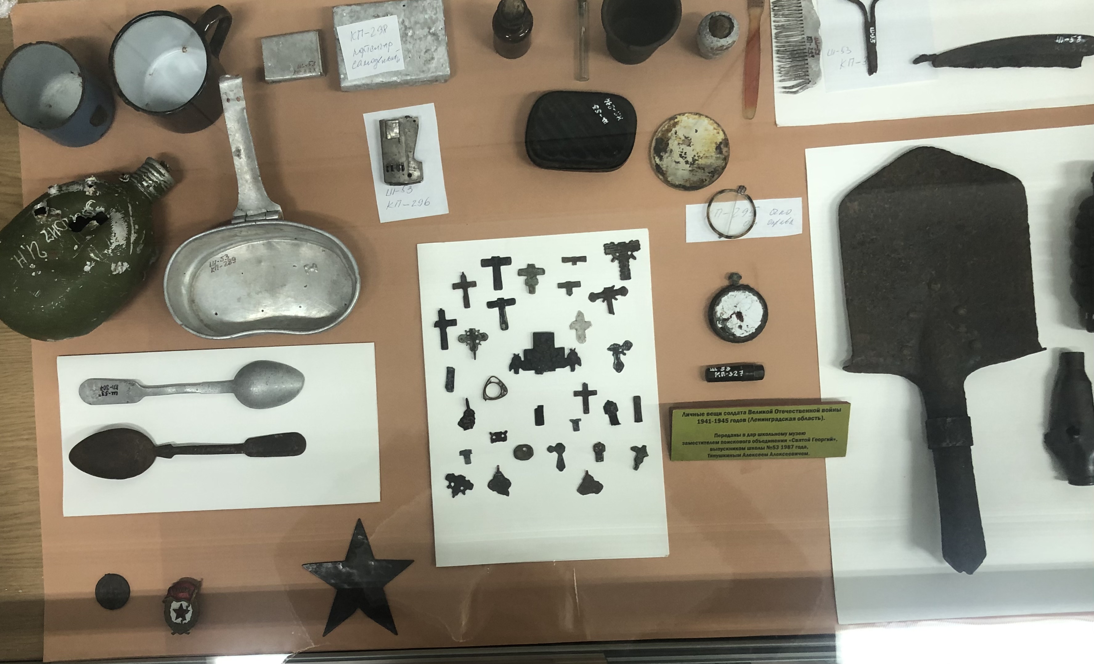 - Артефакты времен Великой Отечественной войны (личные вещи бойцов РККА);