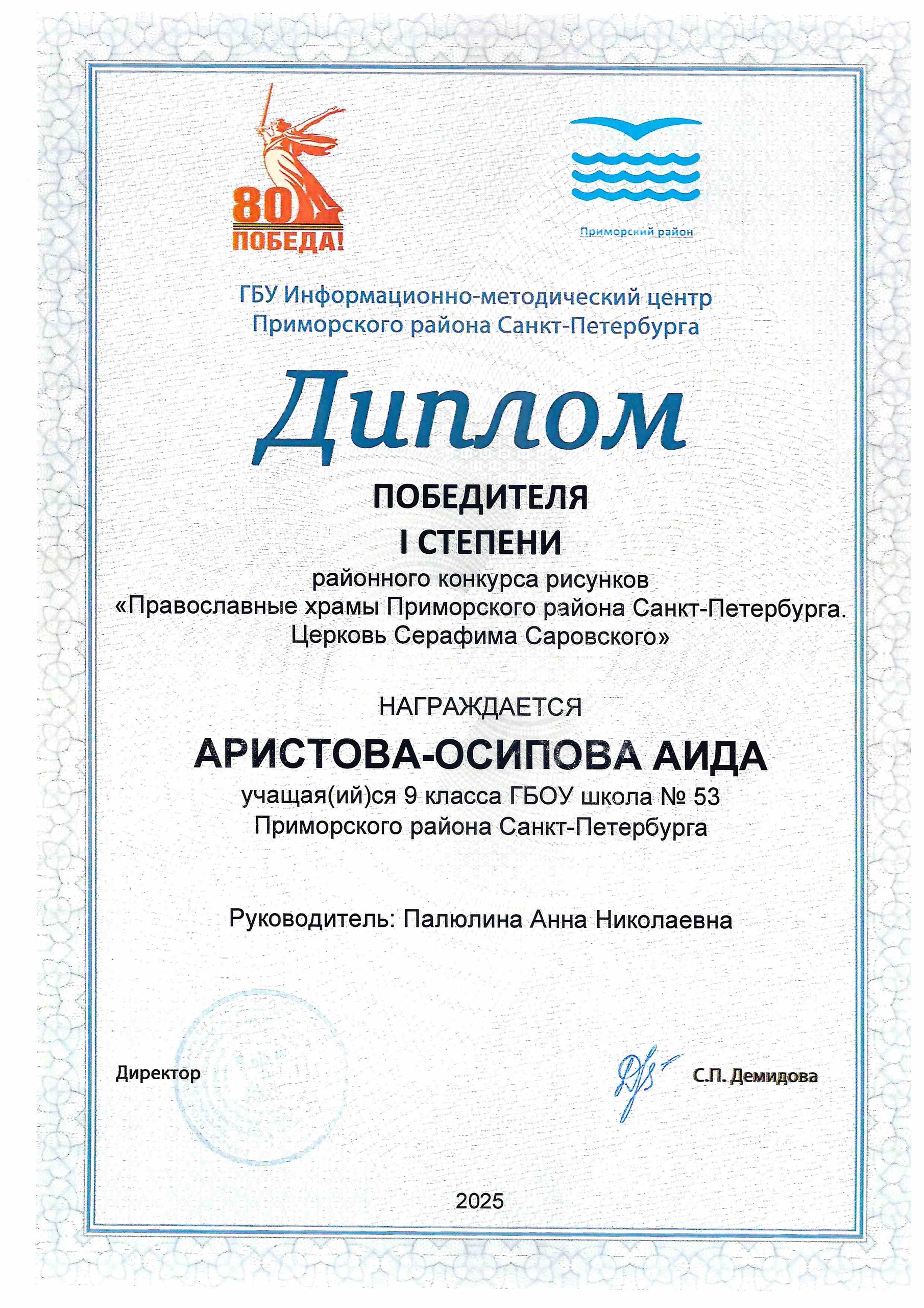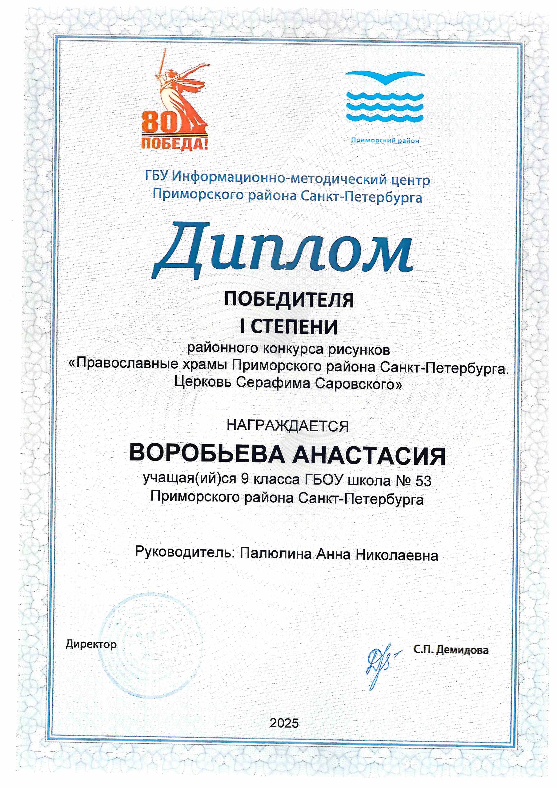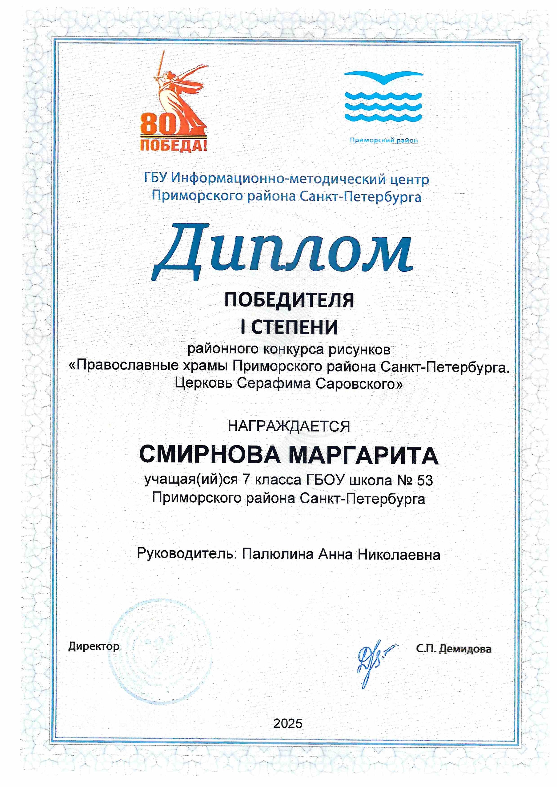 Поздравляем победителей районного конкурса рисунков "Православные храмы Приморского района Санкт-Петербурга. Церковь Серафима Саровского". Гордимся вами!