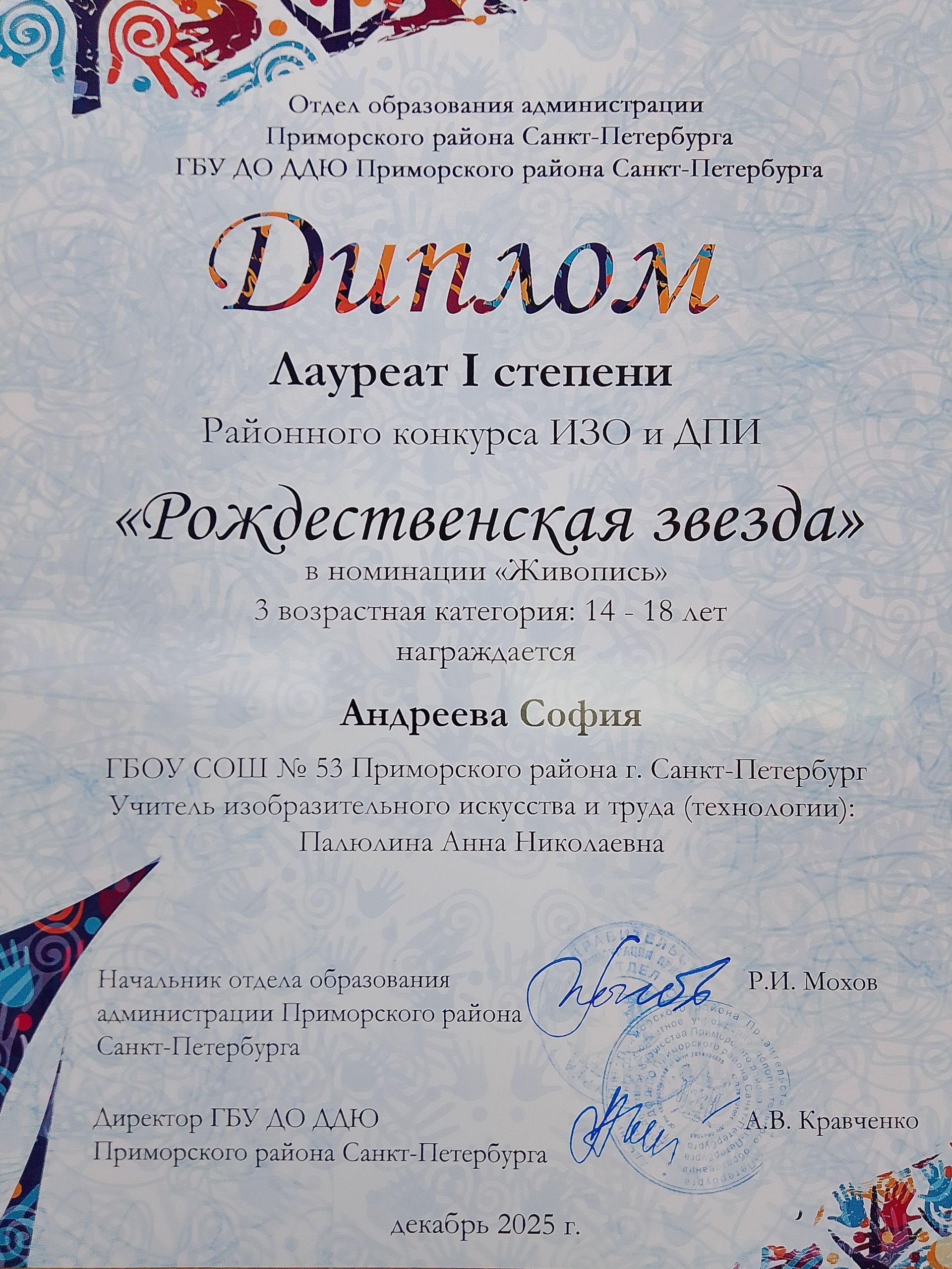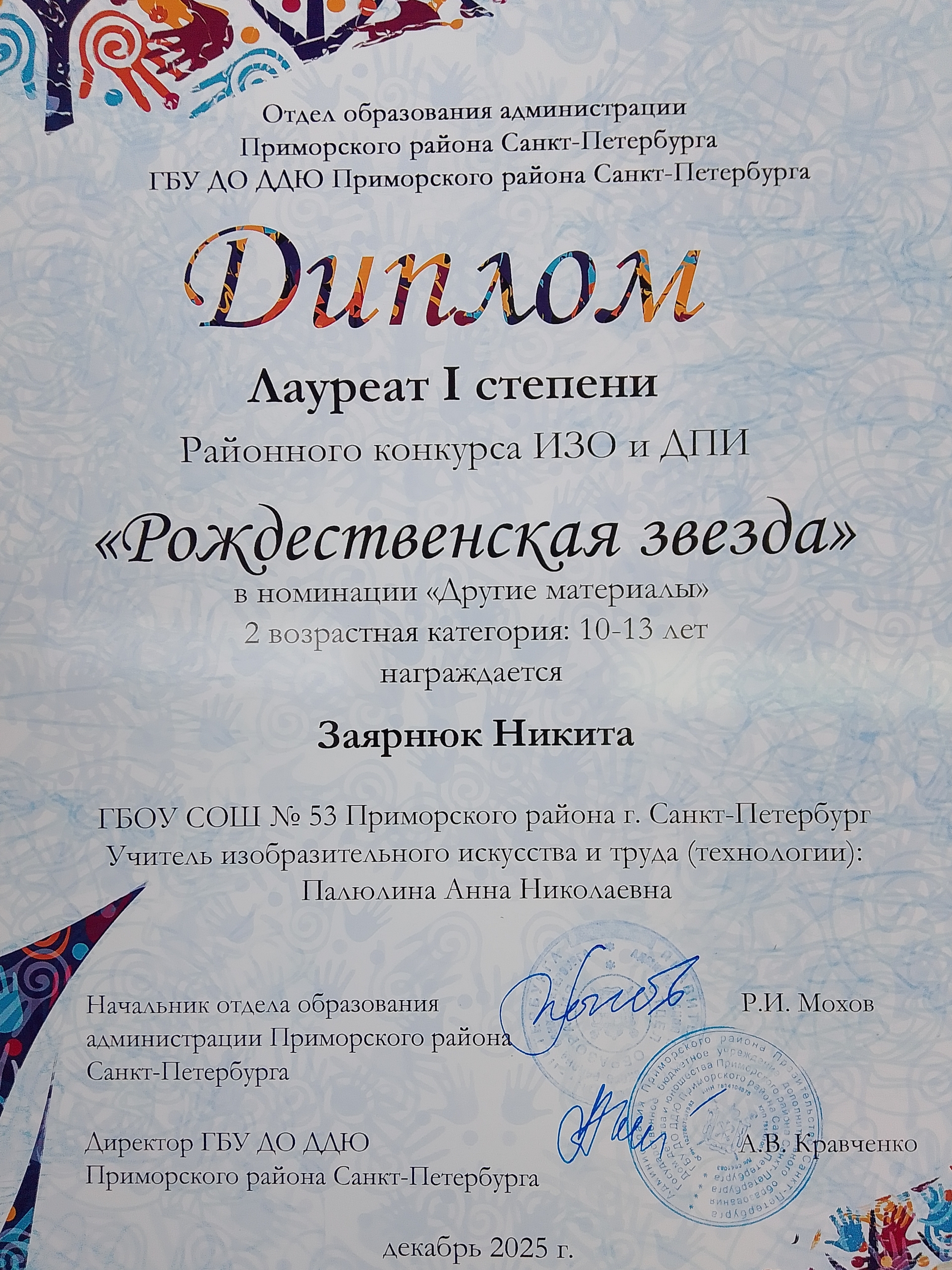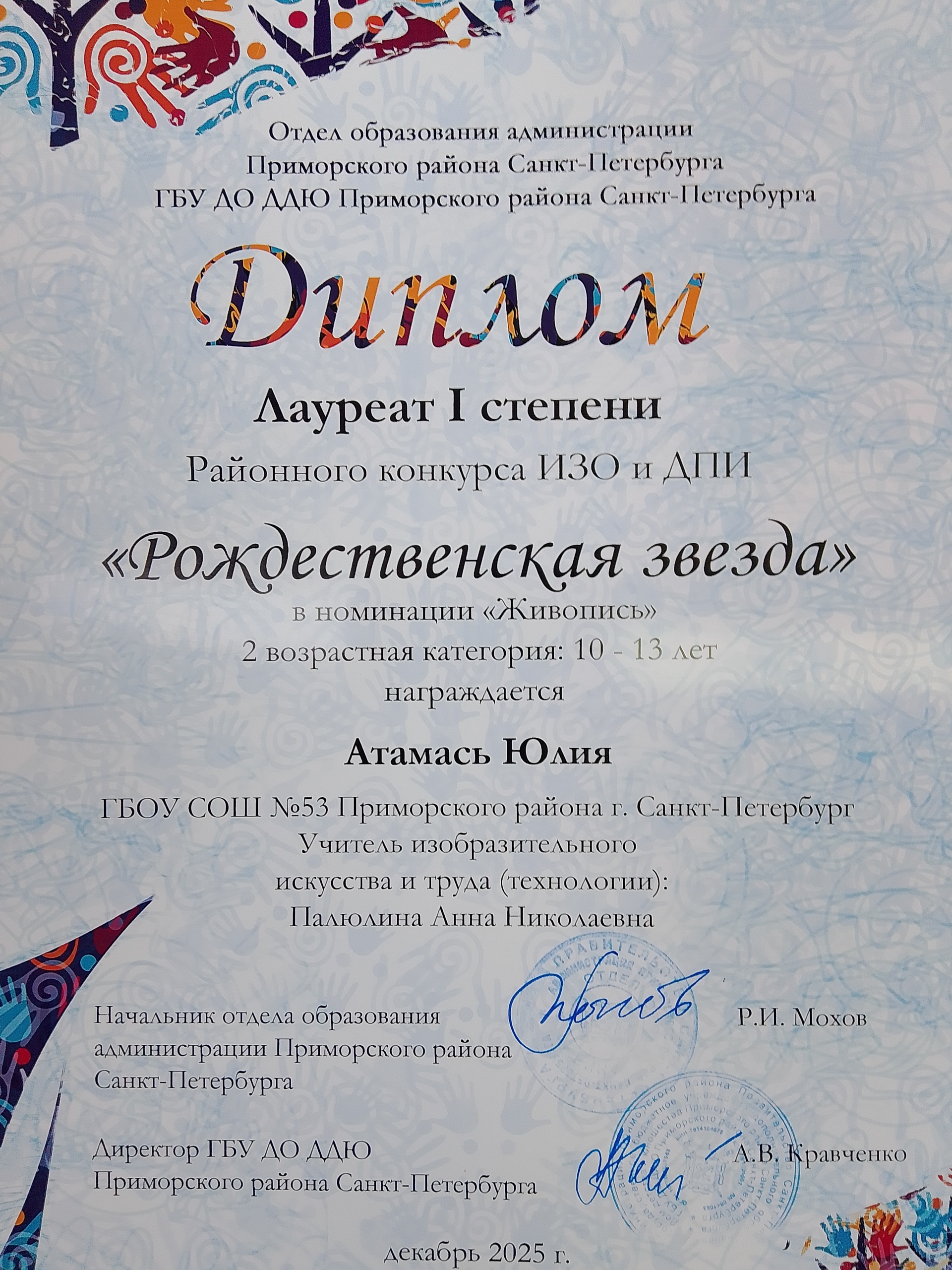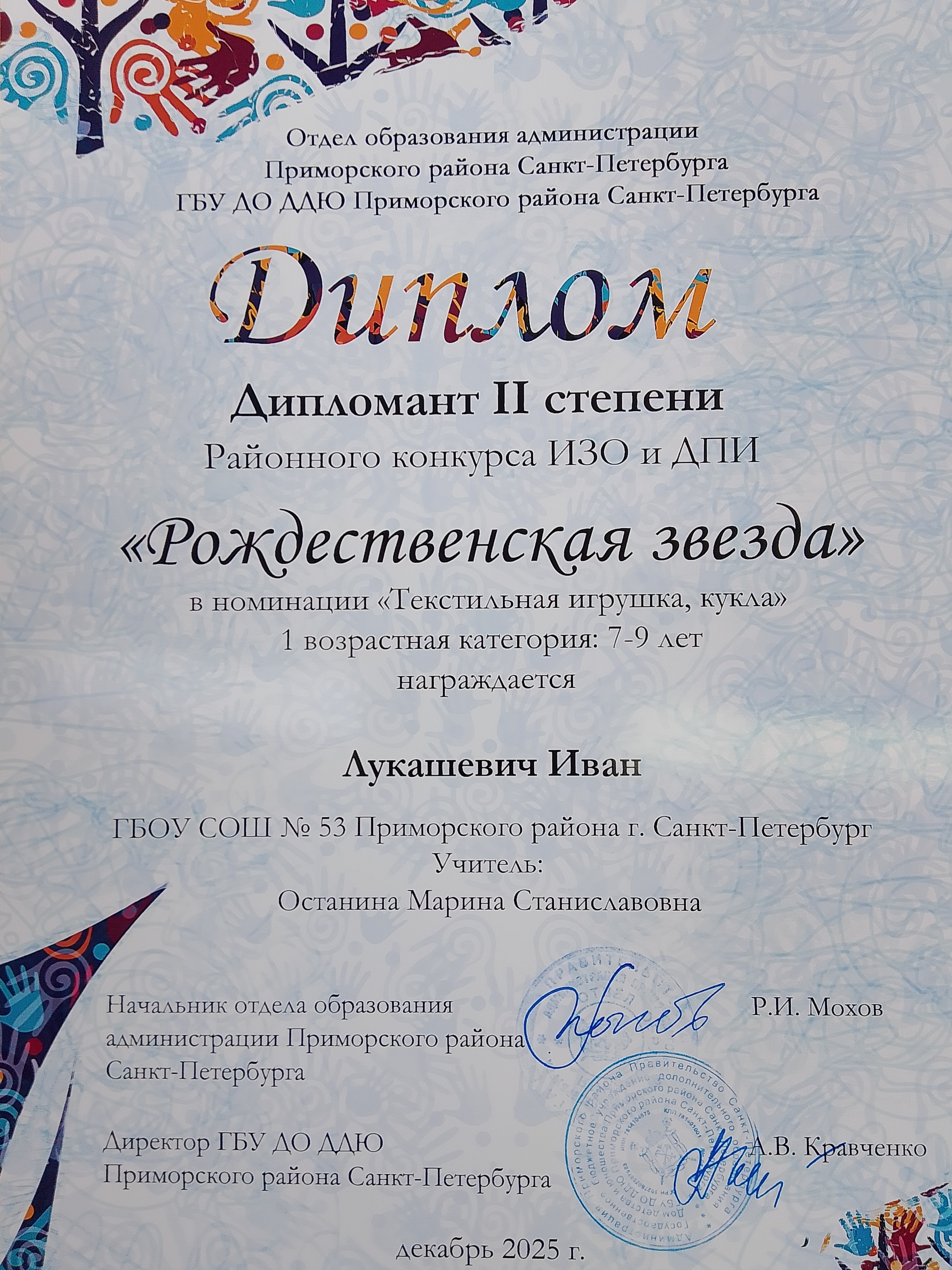 Поздравляем победителей районного конкурса ИЗО и ДПИ "Рождественская звезда"!