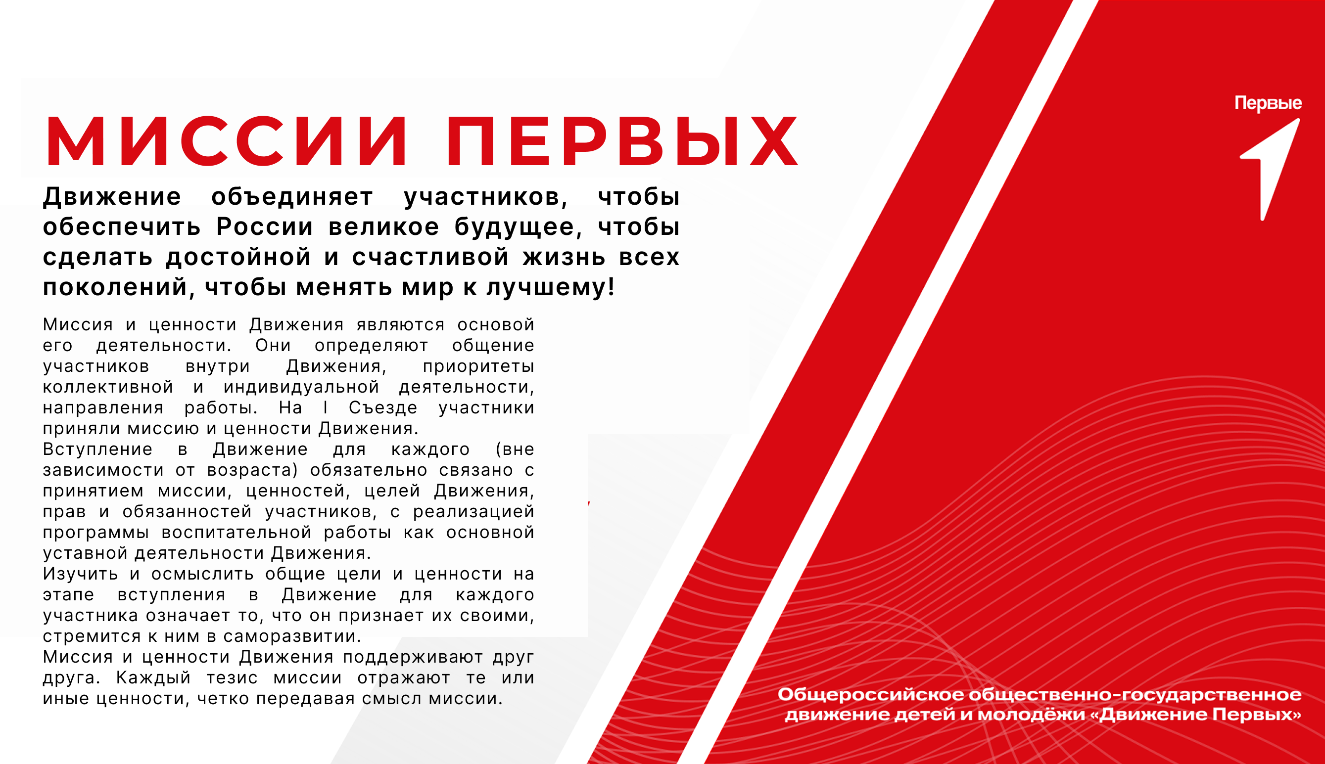 Движение первых — Общероссийское общественно-государственное движение детей и молодежи — это единое движение, создающееся совместно с детьми.